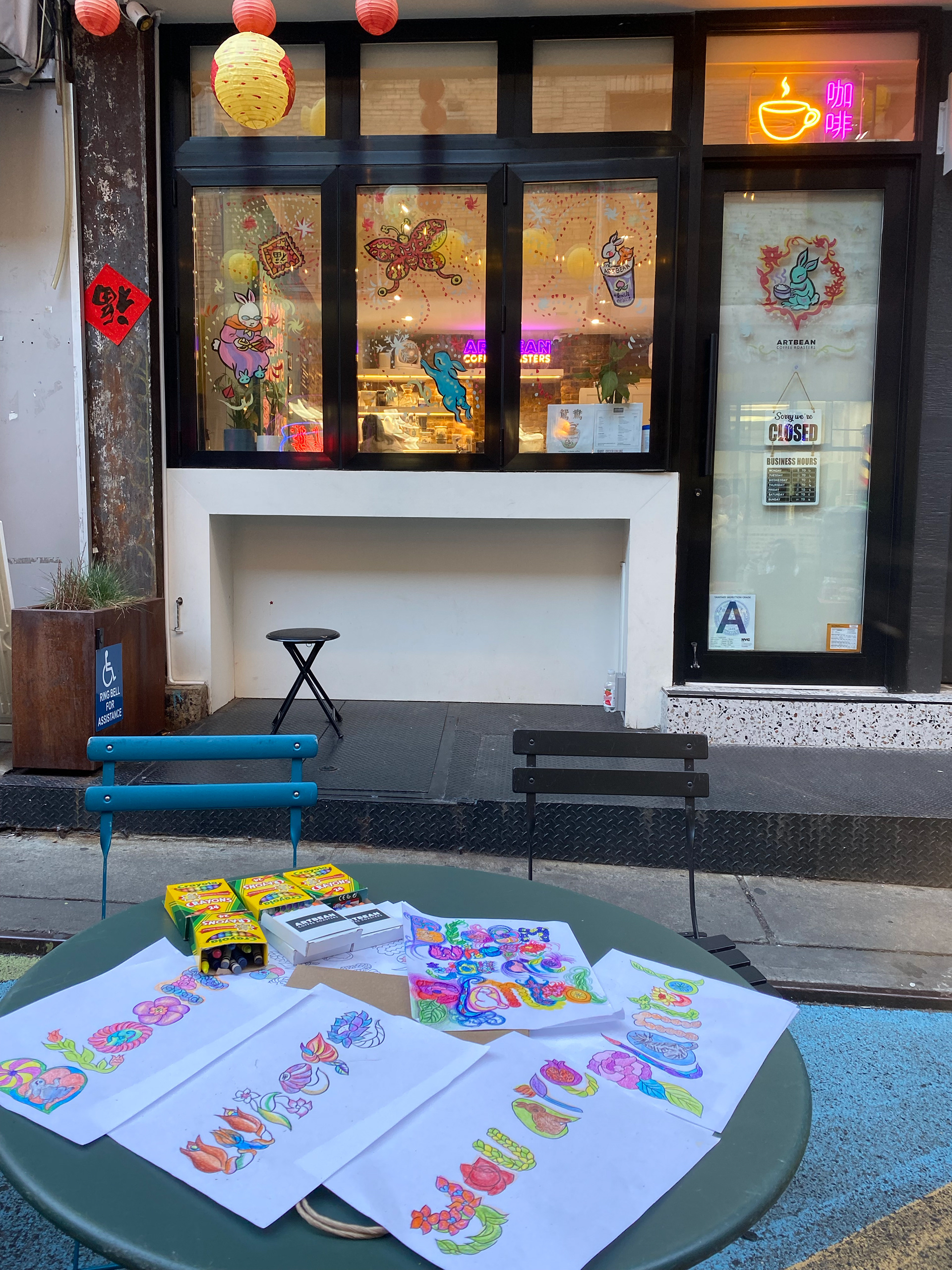 During the opening day, I also live painted the windows as new year decorations :)
