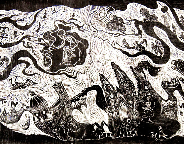 The Visit - a woodcut