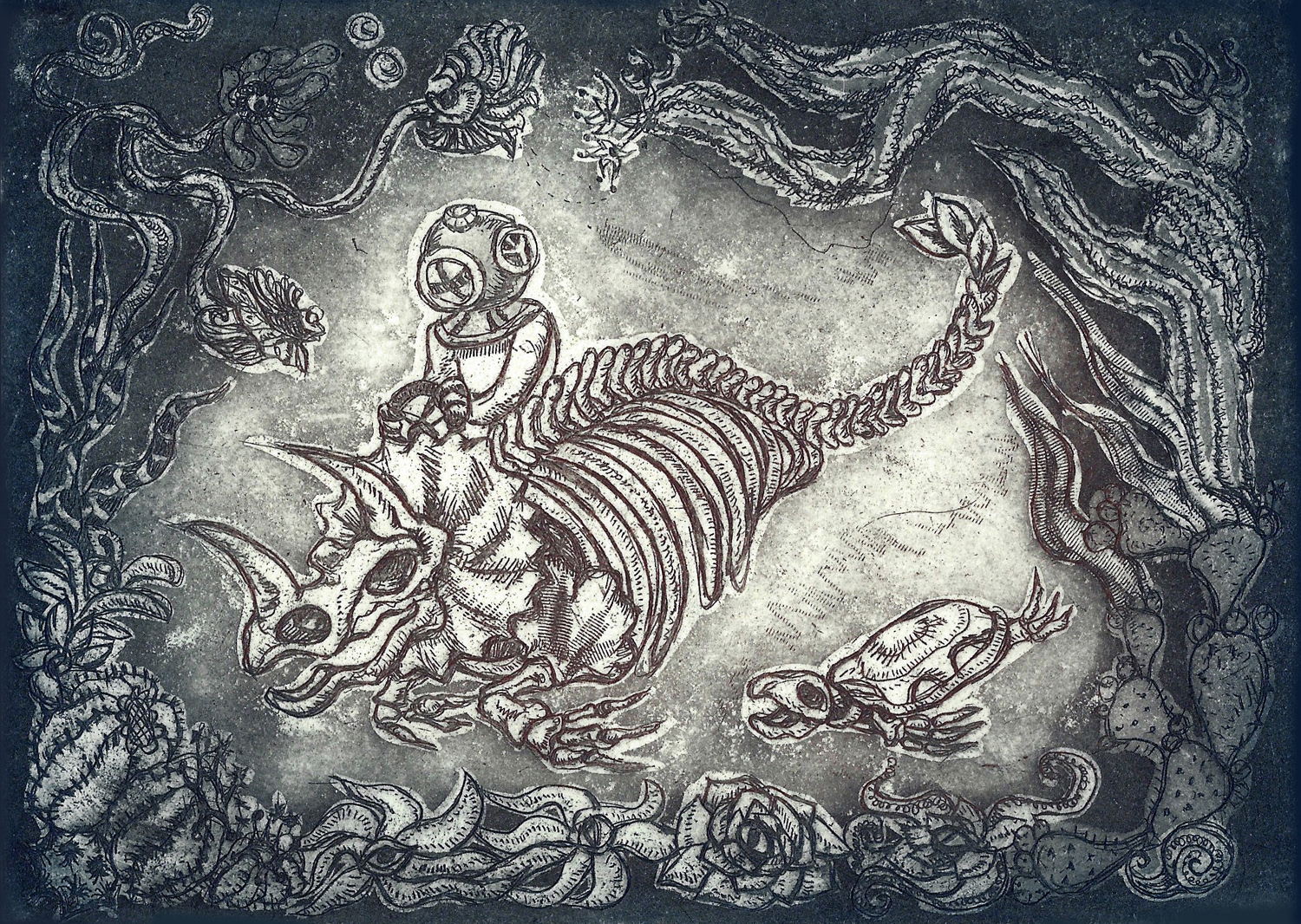 Later on I decided to add some aquatint to the background to make it look darker, deeper.